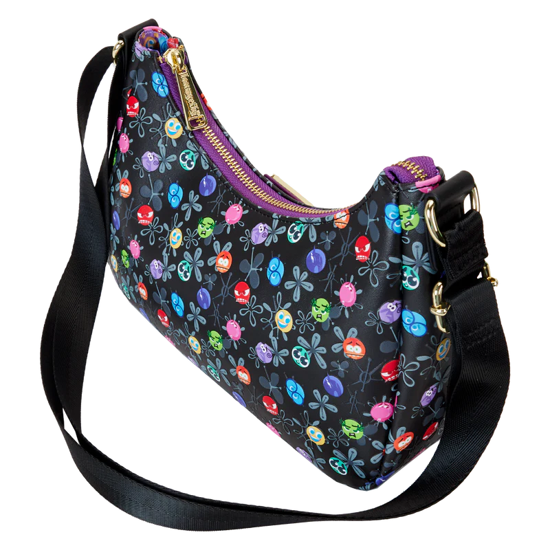 Want a look with all the feels? Check out Loungefly's Pixar Inside Out 2 Core Memories Crossbody Bag. This baguette-style bag features a fun motif of the faces of various emotions inside colorful circles. You might be able to spot Pixar’s Anger, Joy, Fear, Disgust, Sadness, and the newest emotion, Anxiety. They’re set against a contrasting black background, with elegant gray symbol motifs scattered about. An adjustable strap adds convenience. The front zipper pocket is the perfect place for storing smaller items on your journeys. Create wonderful new memories wherever you go with this vibrant accessory.